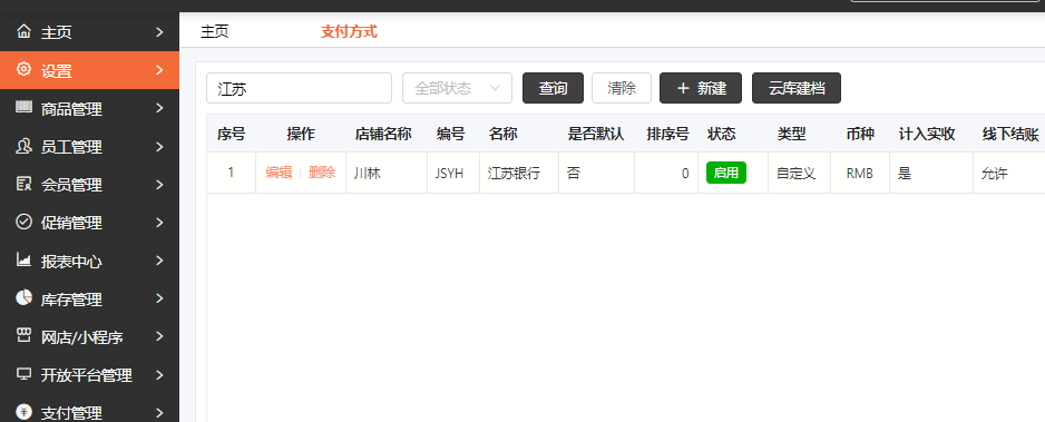 7.配置收银前台。登录爱宝美食云前台,点击系统设置-系统管理-移动支付设置-开通官方支付通道(如下图)