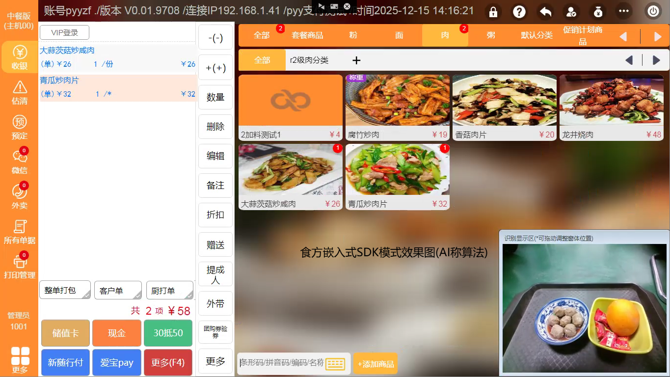 5.打开美食云进入收银界面,设置AI插件的焦点设置