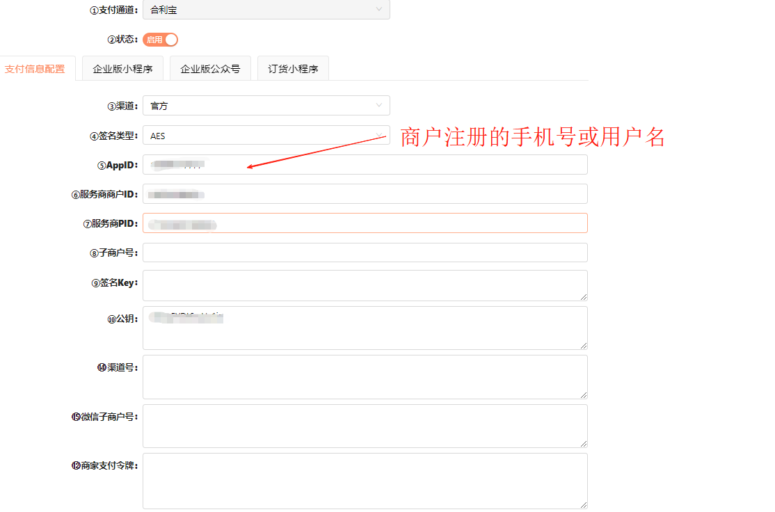 3.按照下图,进行配置合利宝支付通道信息