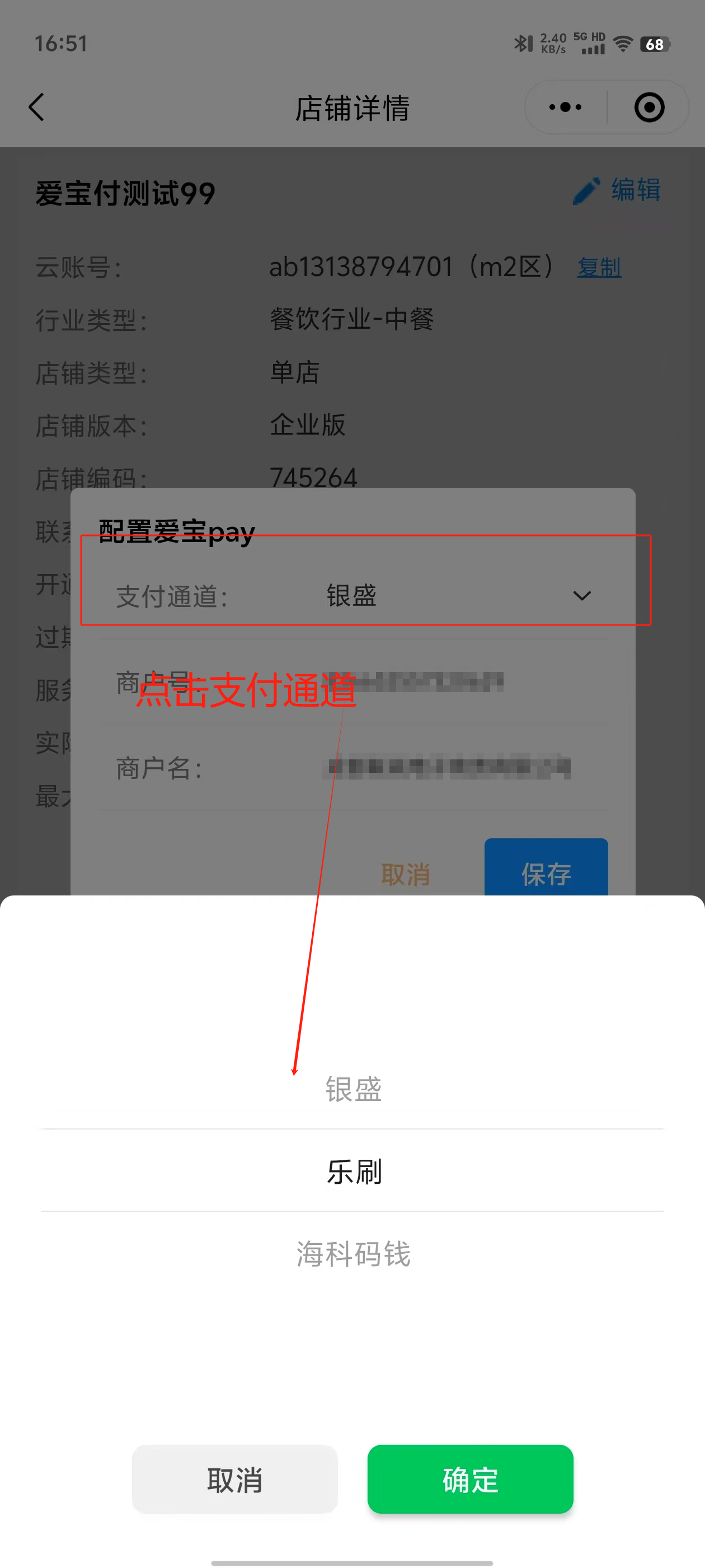 必须在爱宝联盟小程序注册美食云账号,支付通道选择 【爱宝pay 】