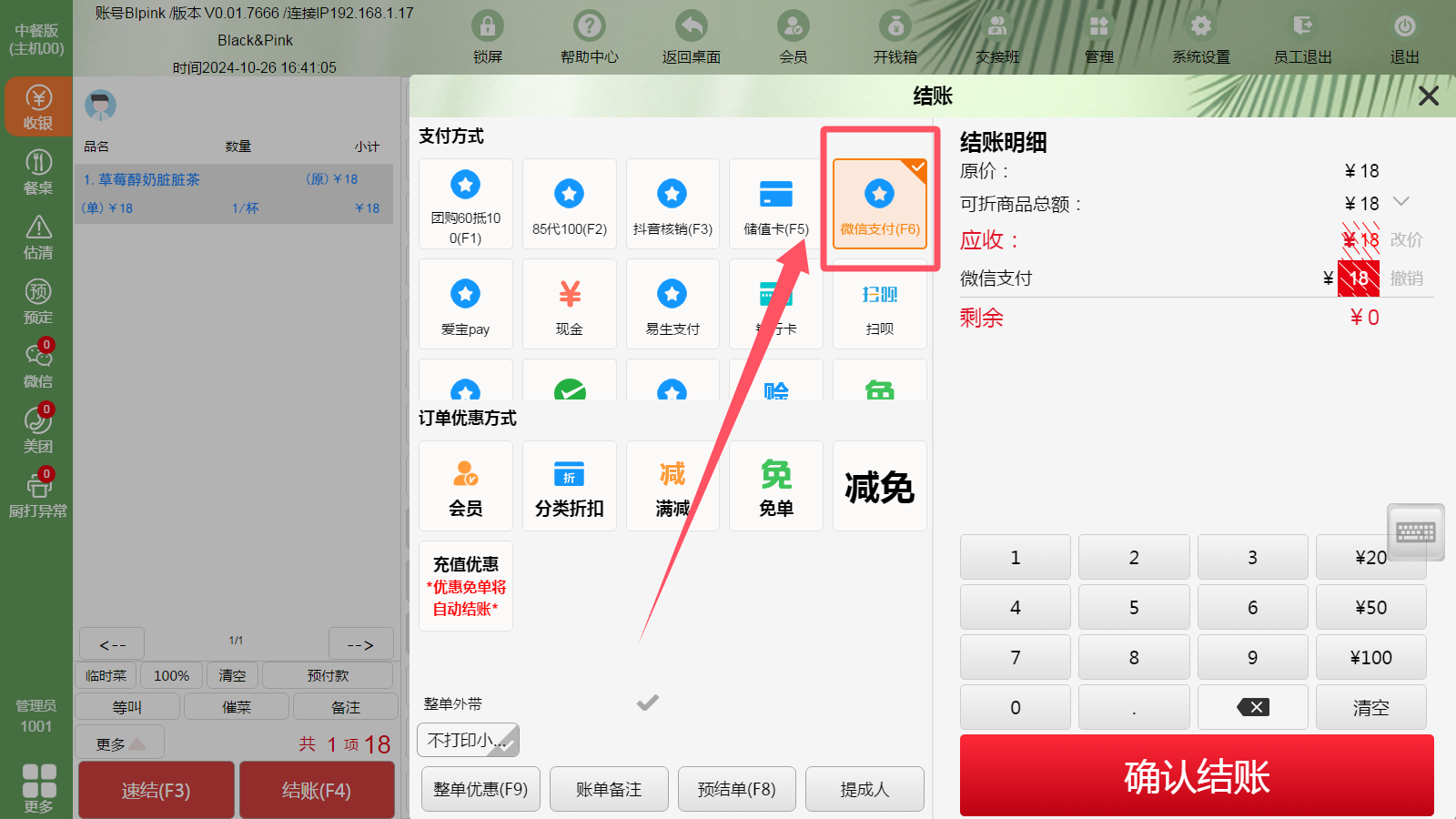 前台结账选择支付方式