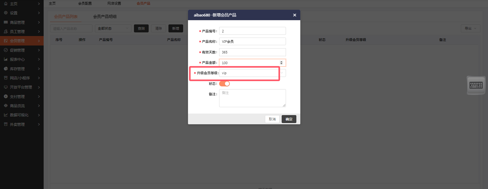新增会员产品,有效天数设置99999以内,填写信息后保存