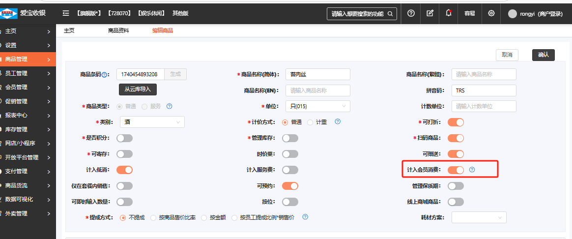 如果商品太多,没法一个一个找的话,点击更多,选择非计入会员消费