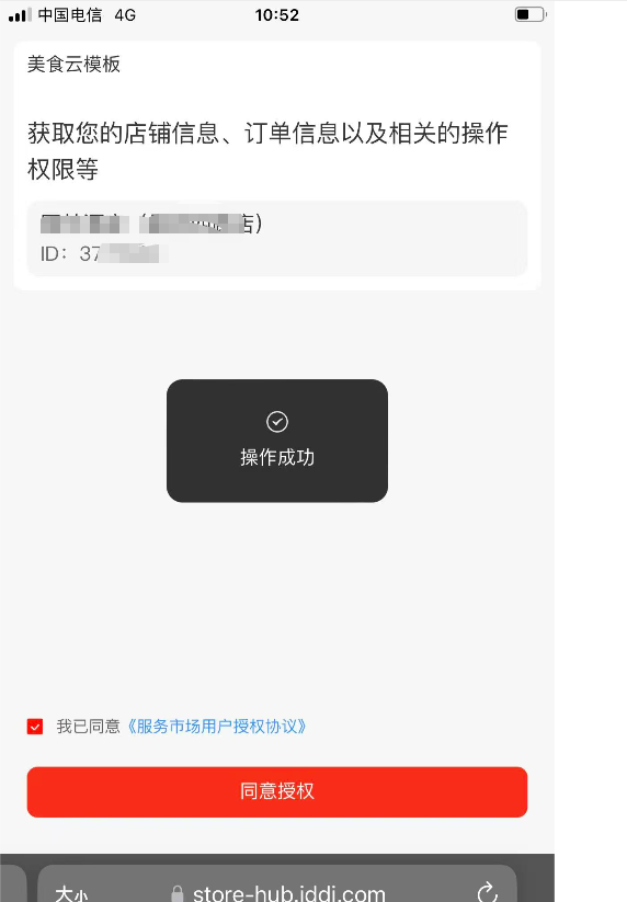 同意授权后,发送美食云账号和京东门店名称给技术工程师,等待技术工程师配置完成并告知即可操作下一步