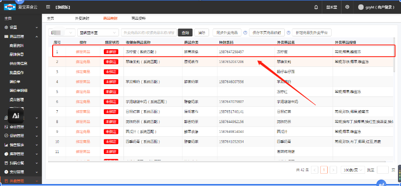 5.这时候我们点击 【外卖管理】---【商品映射】,进行绑定映射商品