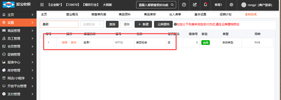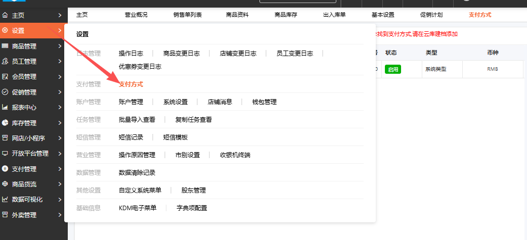 后台设置找到支付方式