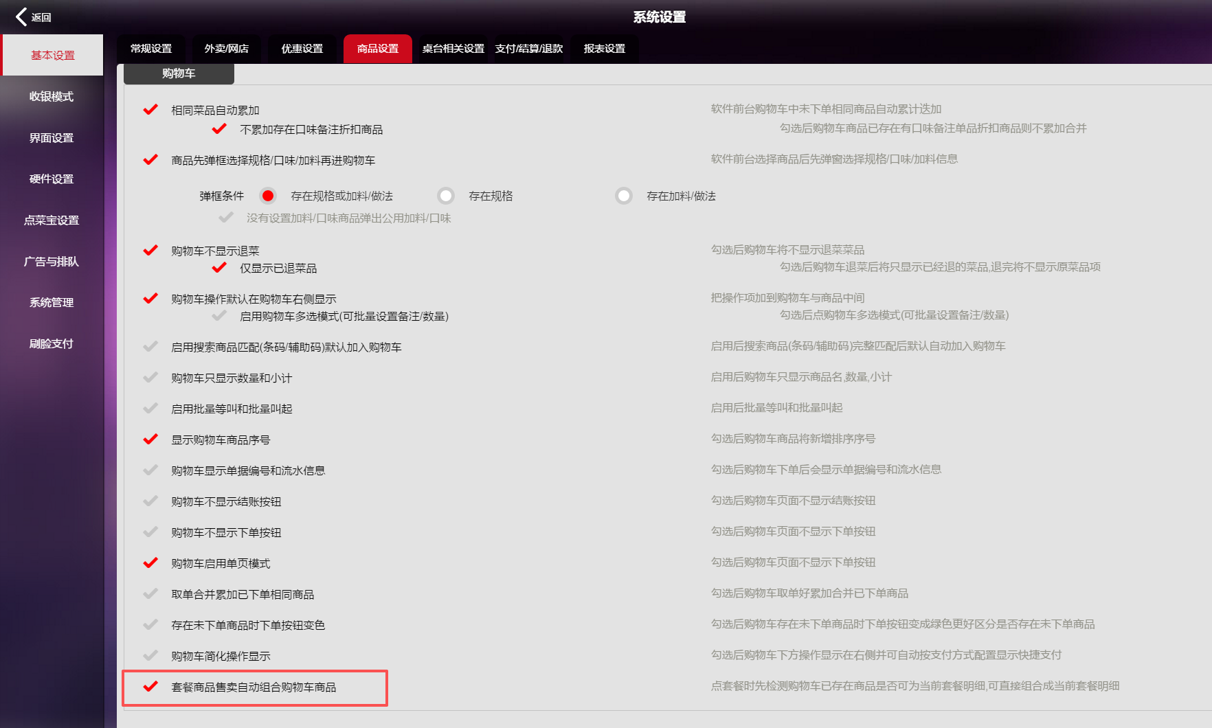 以下条件不合并:存在加料,口味,餐盒费,计时,团购券核销,规格不一致,数量不足1,固定可选套餐)
