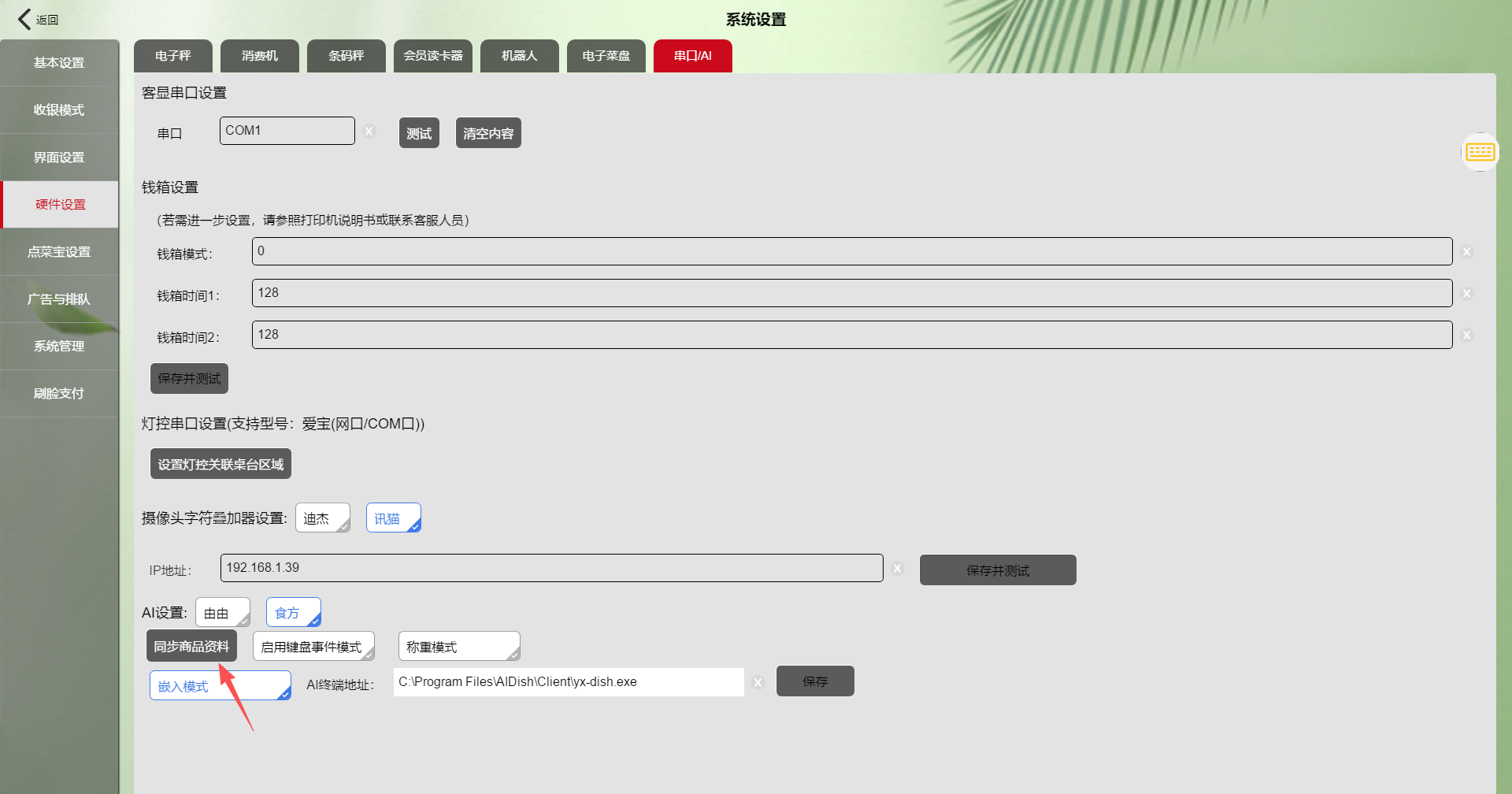 系统设置--硬件设置--串口/AI