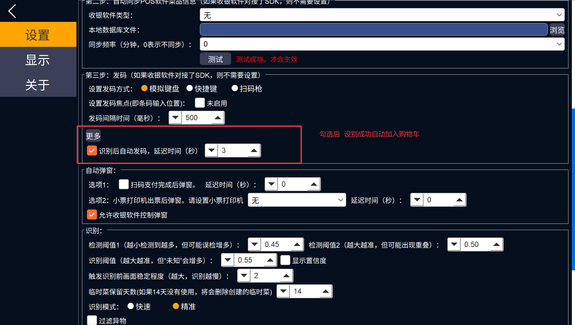 如需要自动加入购物车,则需要勾选