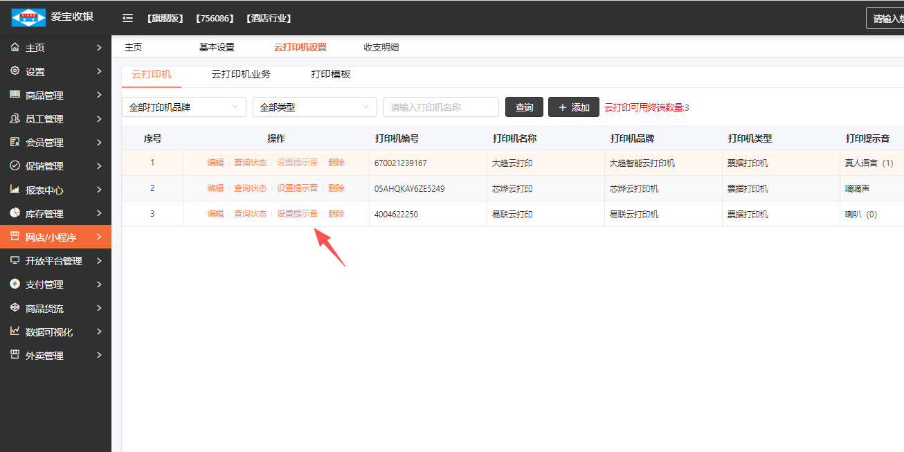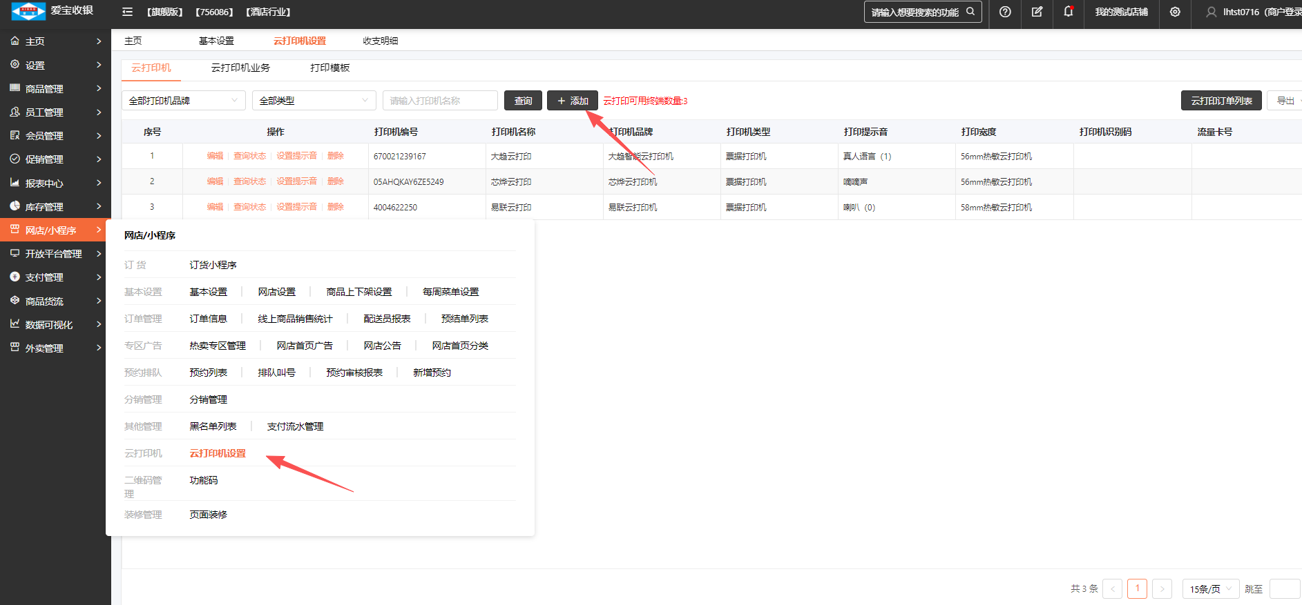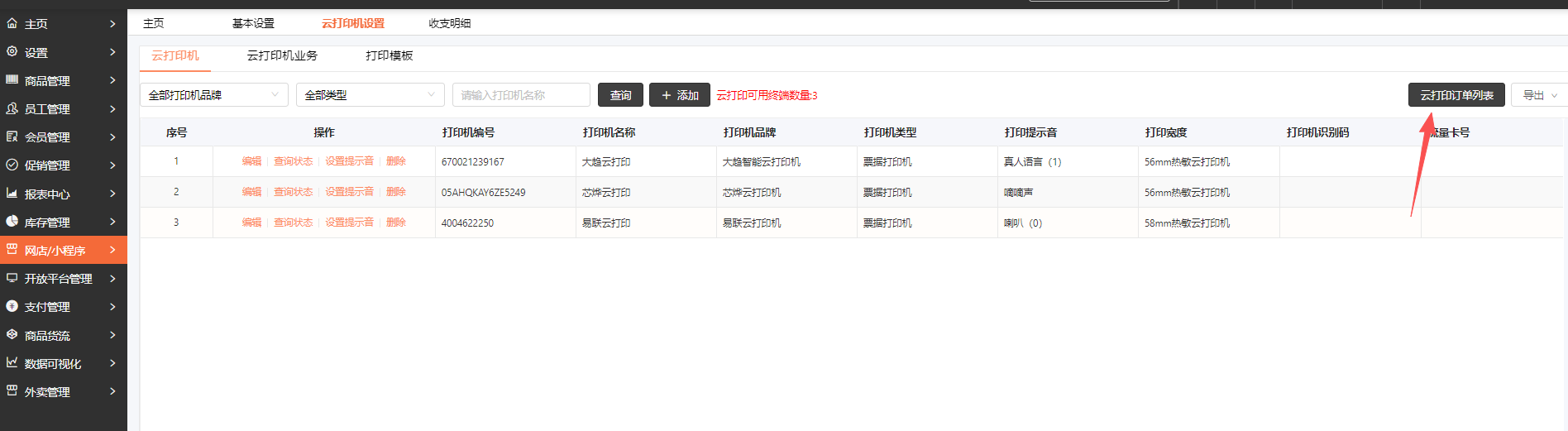注意事项:开启云打印自动接单后,扫码点餐单据会被后台云打印全部接单,会导致前台收银端没有线上的单