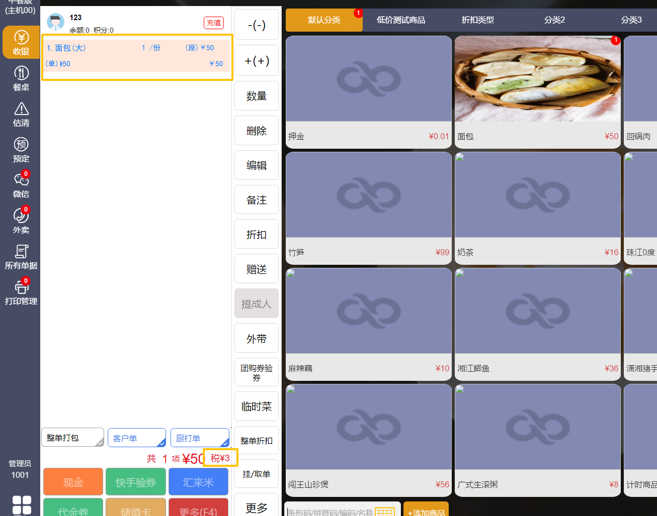 计算公式:结账金额=商品金额+税费(商品金额*税率)