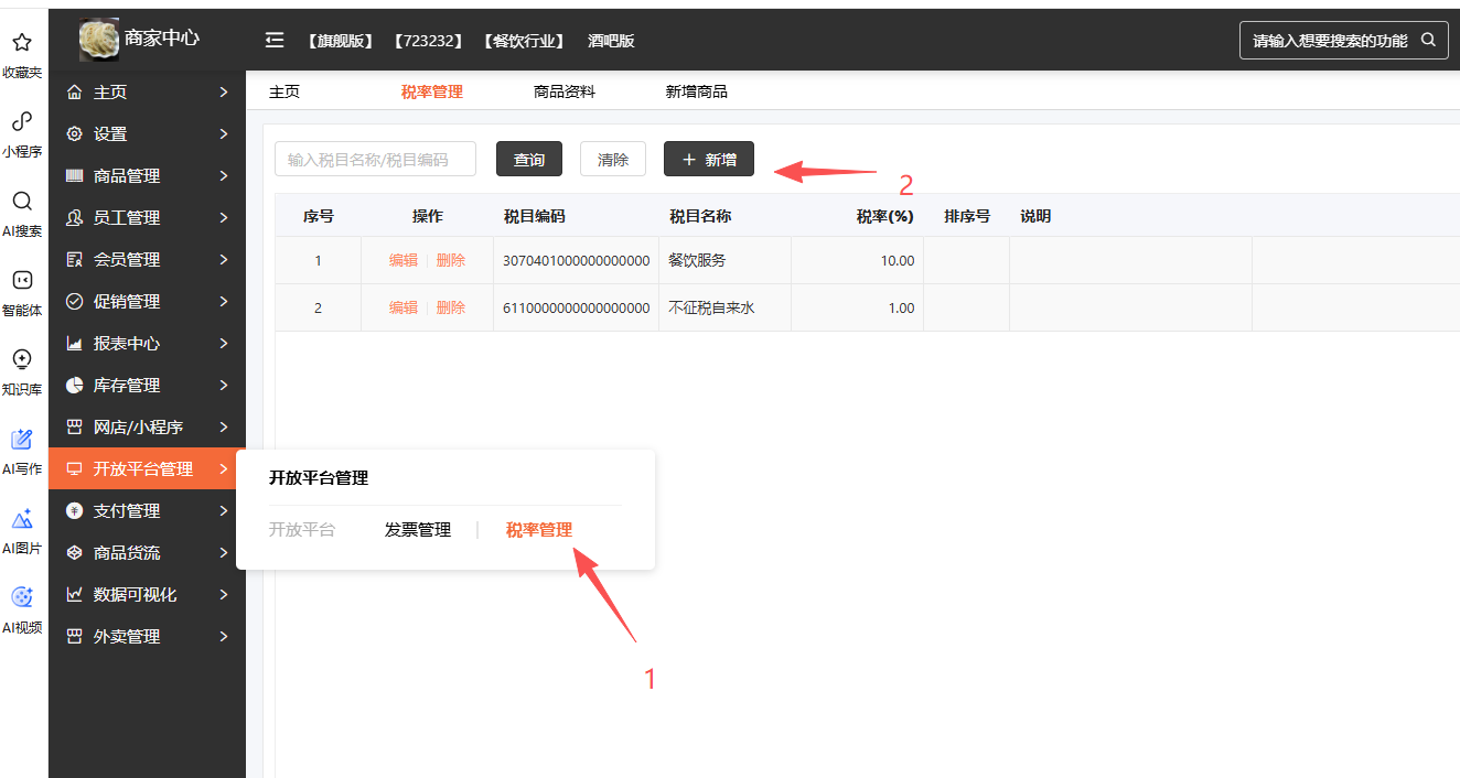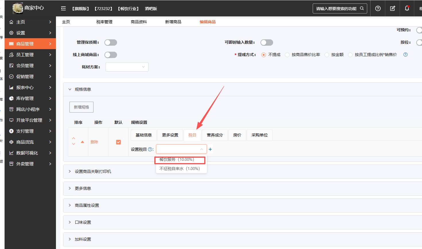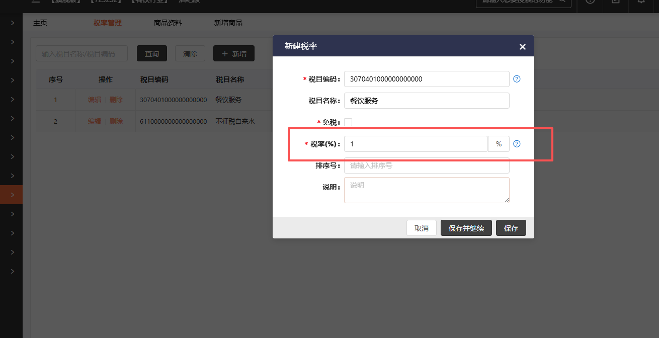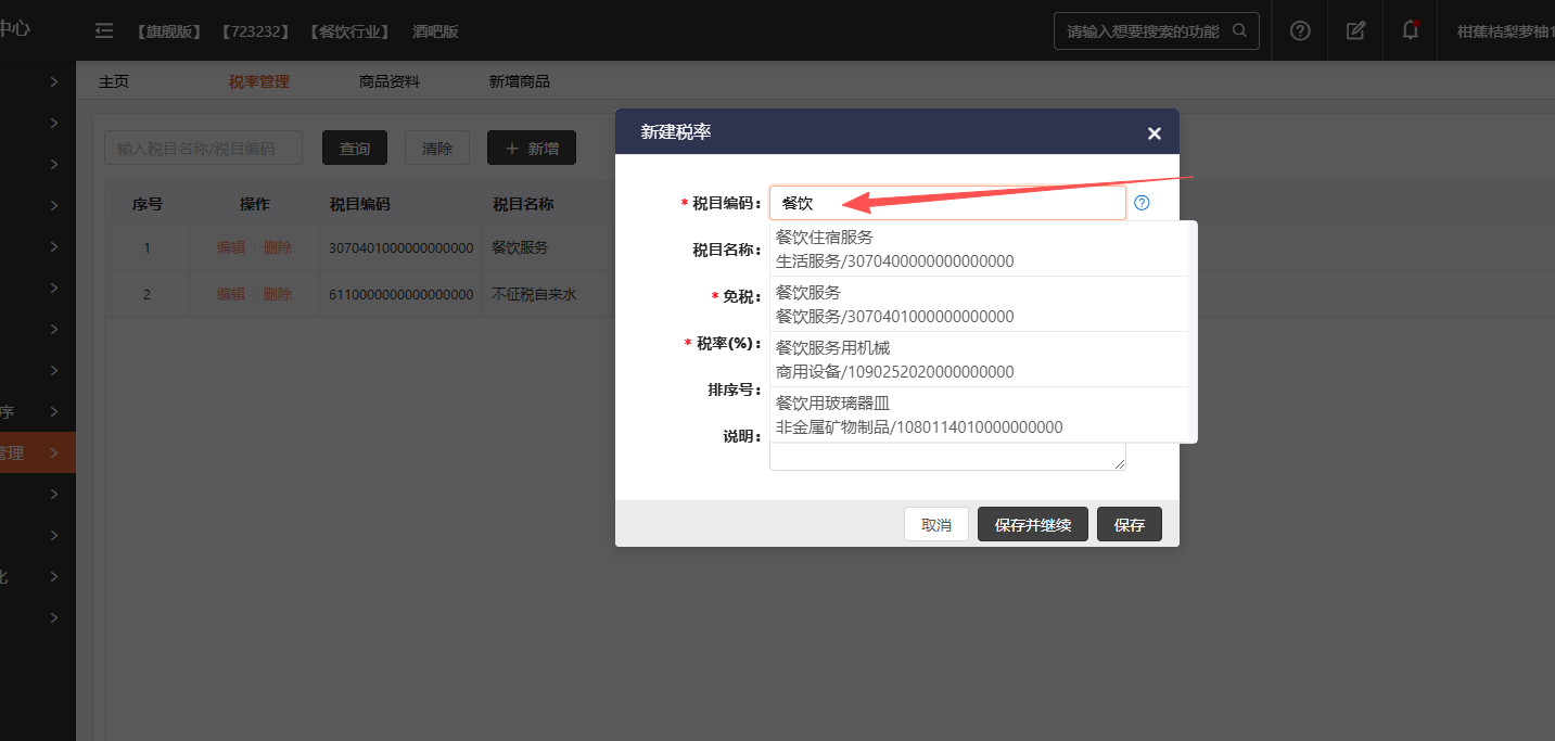 这里以餐饮服务为例子添加税率,在税目编码里搜索餐饮服务之后一定要按回车才能搜索出来