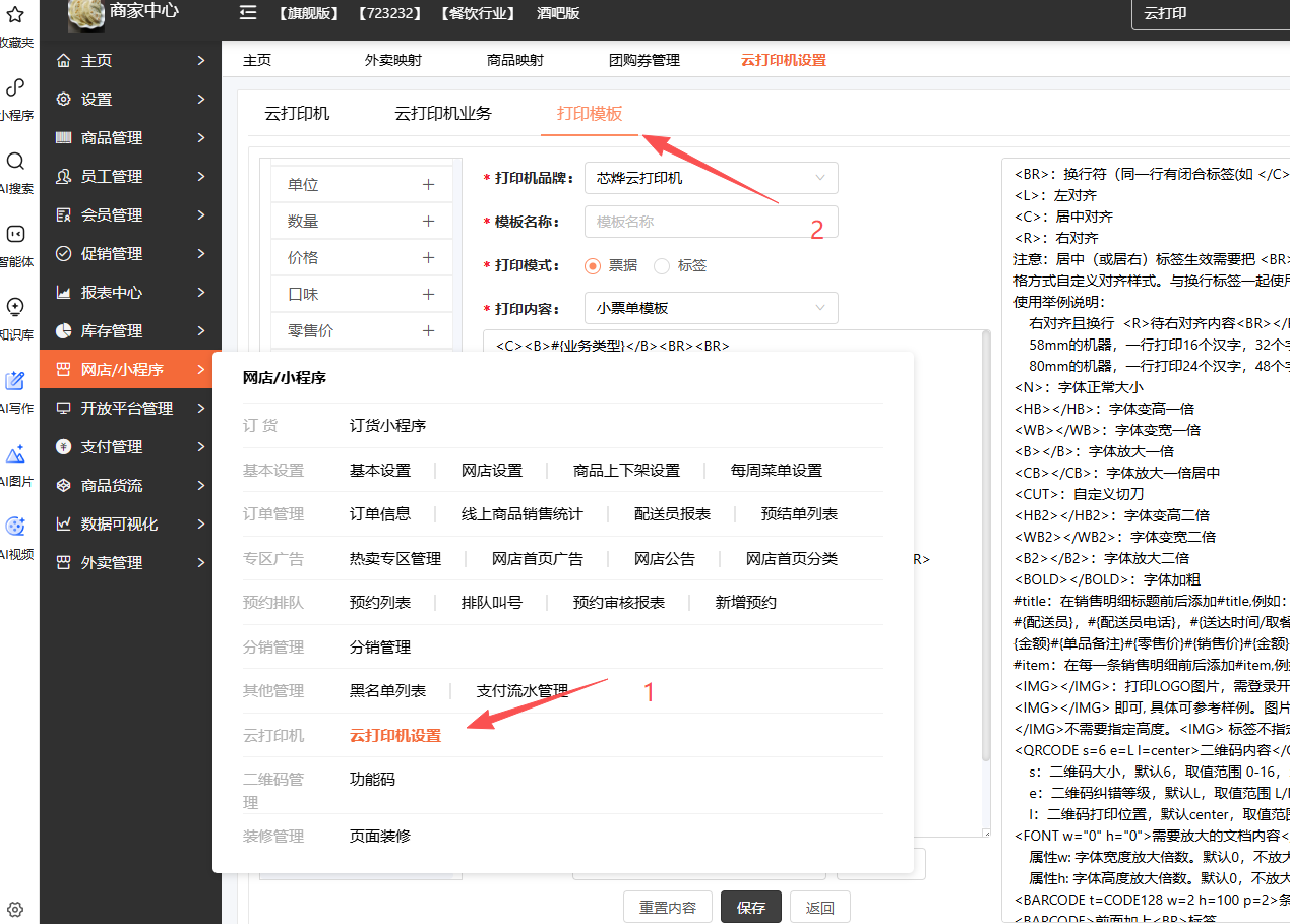 打开云打印机打印模板