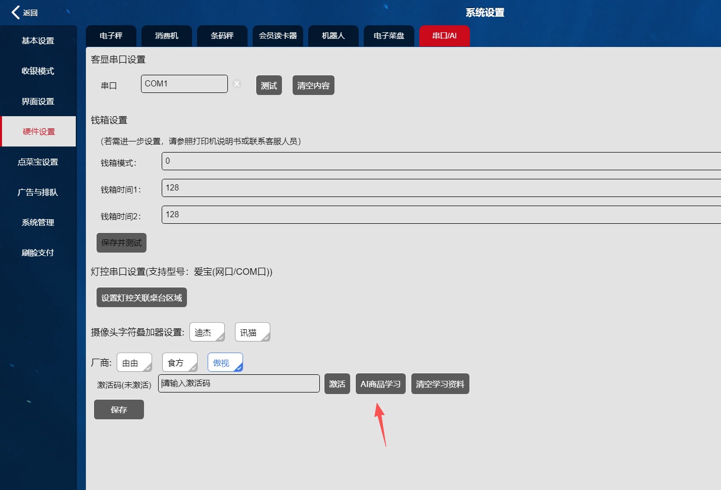 1.1启动软件 -→系统设置-→硬件设置-→串口/ai