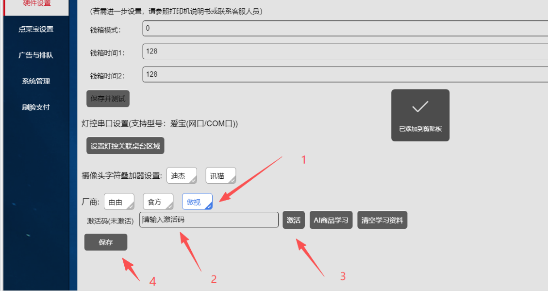 1.2选择傲视,输入激活码,点击激活,提示成功后保存