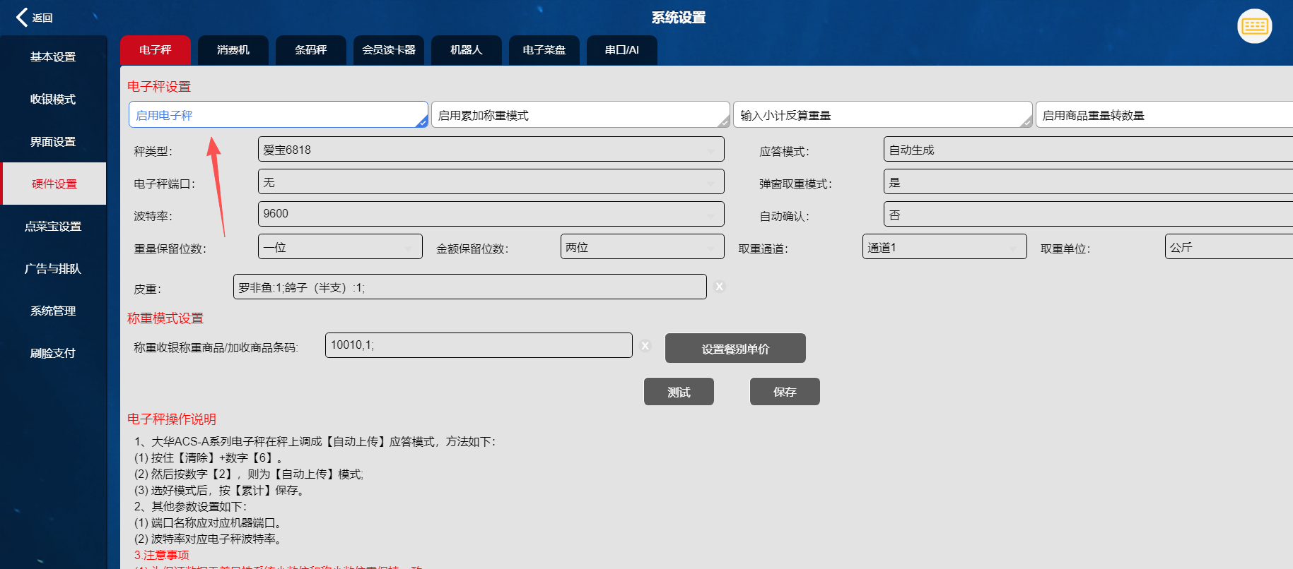 1.1启动软件 -→系统设置-→硬件设置-→电子秤