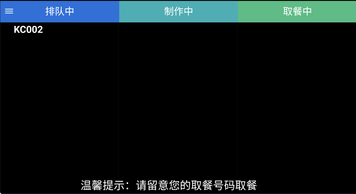 下单成功叫号屏显示为【排队中】