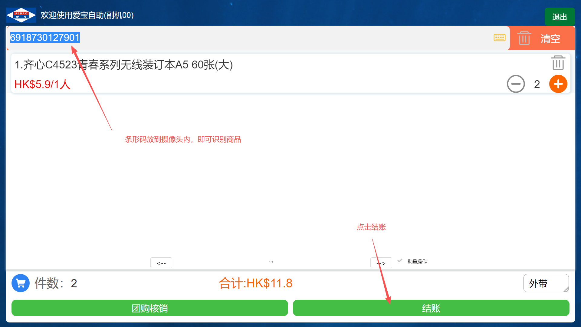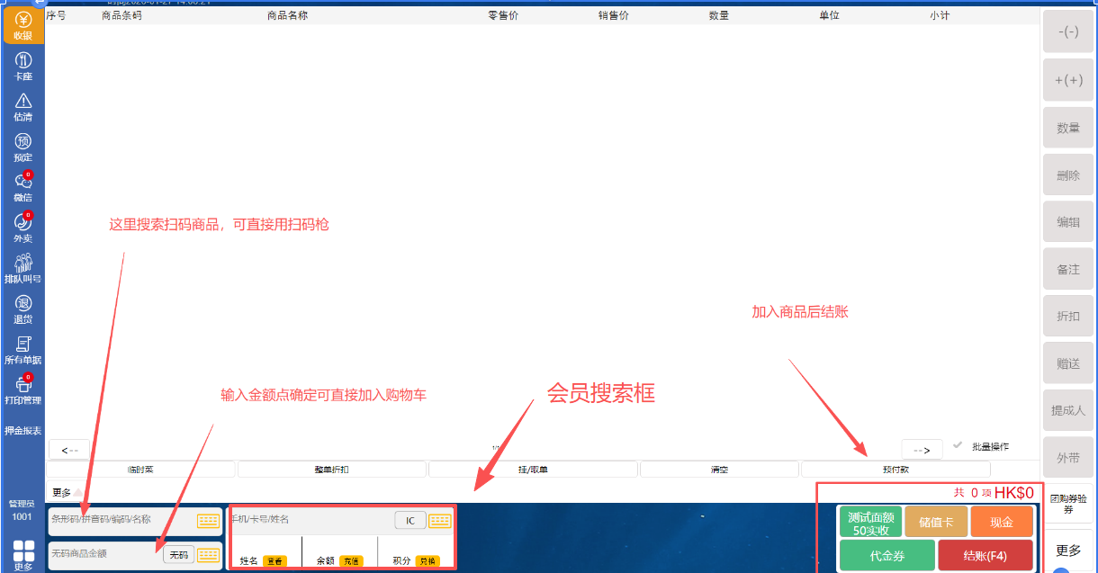 收银员扫码模式: