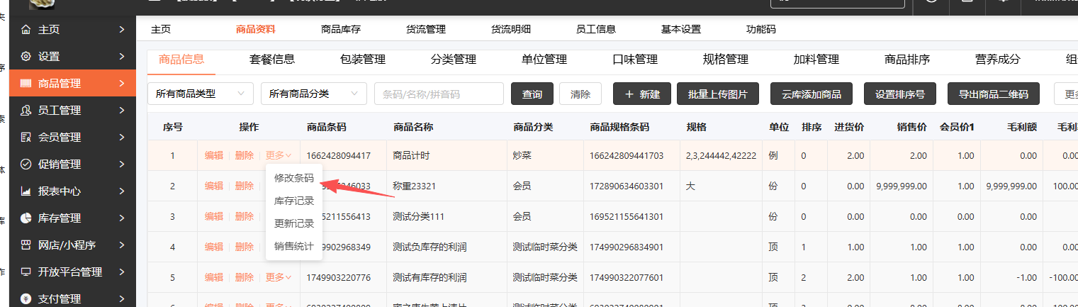 修改条码: