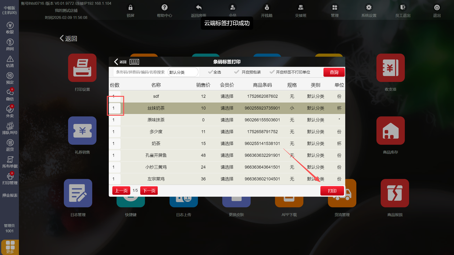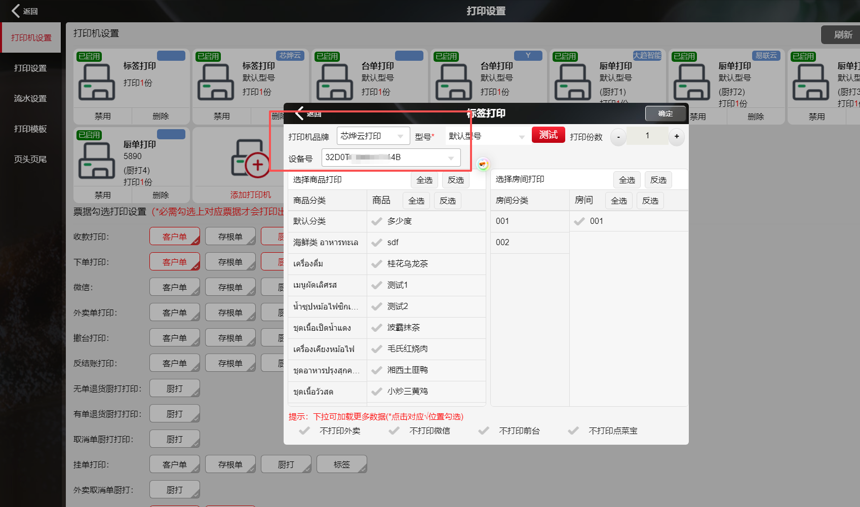 美食云旗舰版PC收银端连接云标签机(芯烨云)设置教程