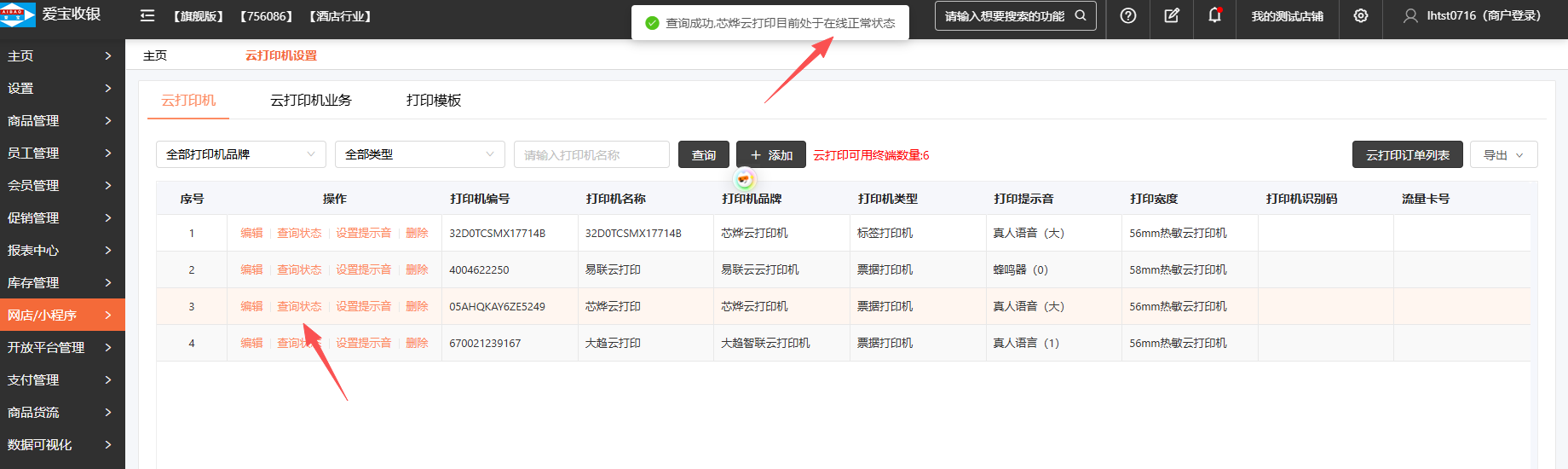 上述步骤仅供测试云打印机连接测试打印,非收银端打印模版参数,