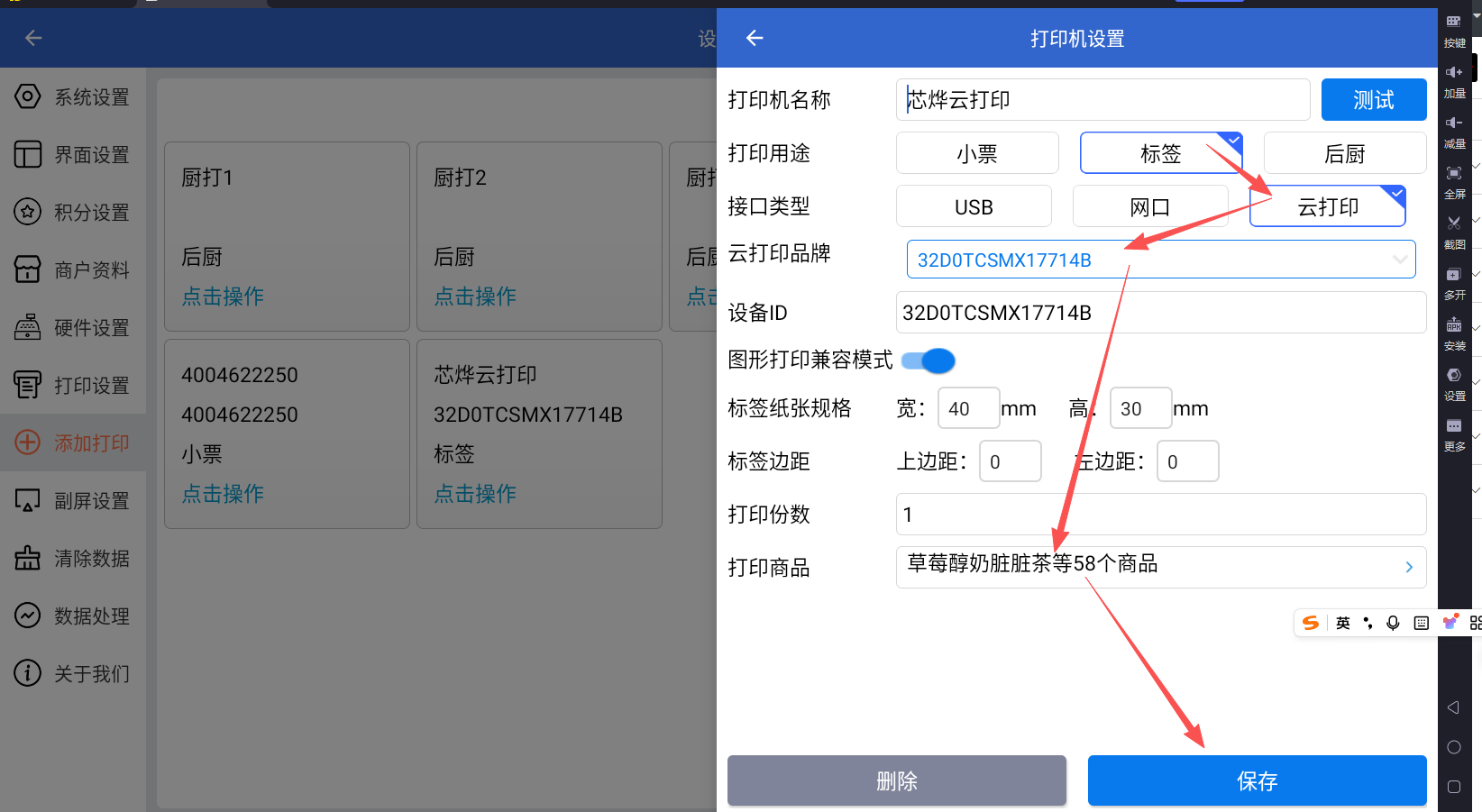 美食云旗舰版安卓端连接云标签机(芯烨云)设置教程