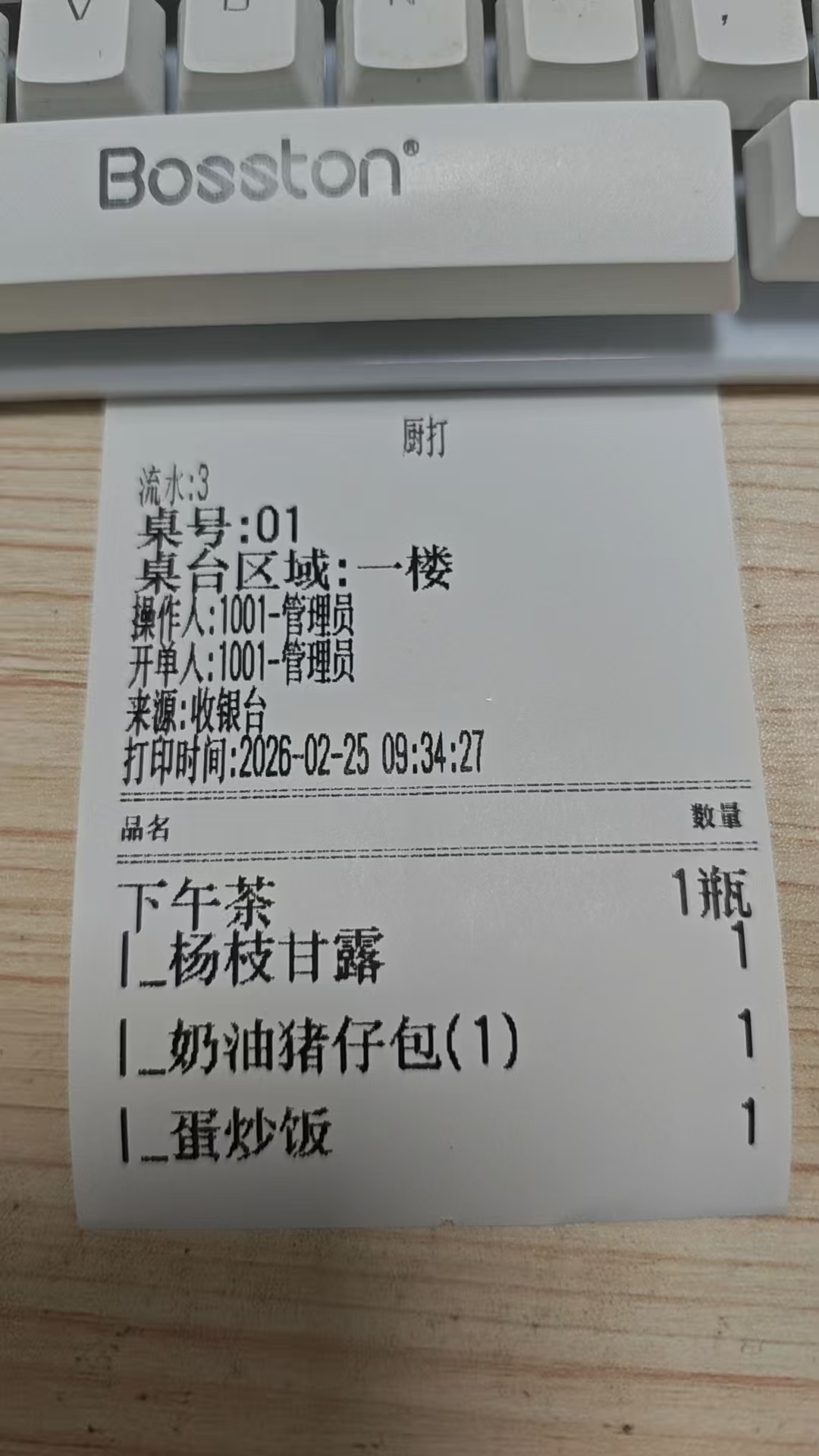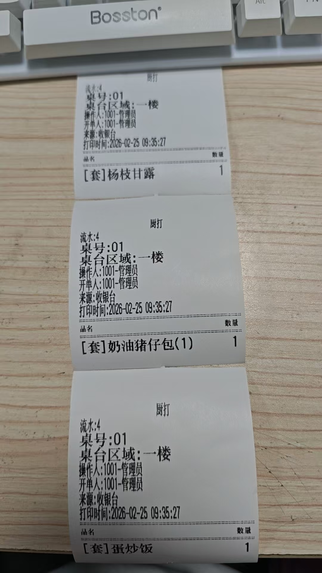 勾选【套餐分单打印套餐名】 不勾选【厨打分单套餐拆分打印】打印效果: