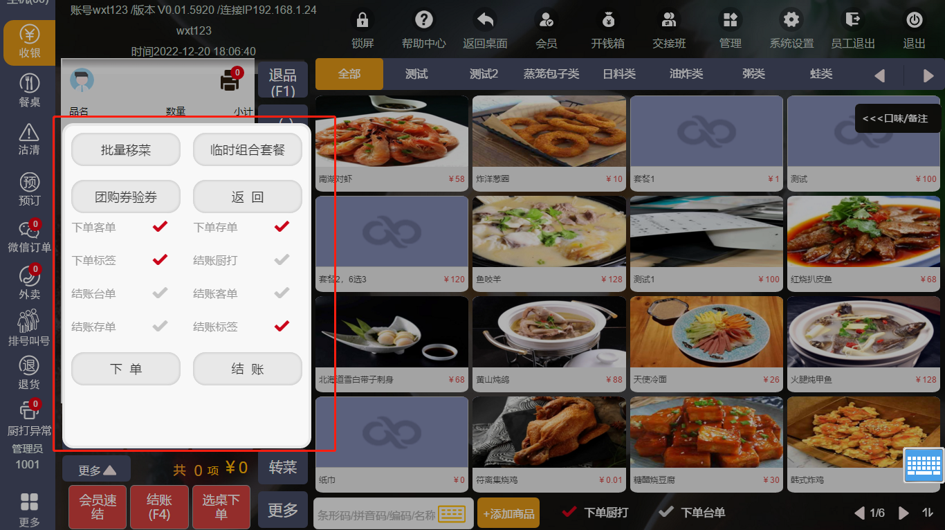 1、收银端“更多”没有下单〔厨打、台单)打印设置