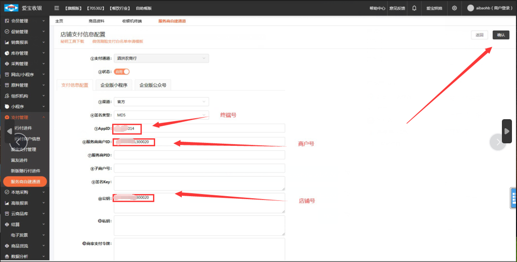 3.按照下图,进行配置【泗洪农商行】支付通道信息