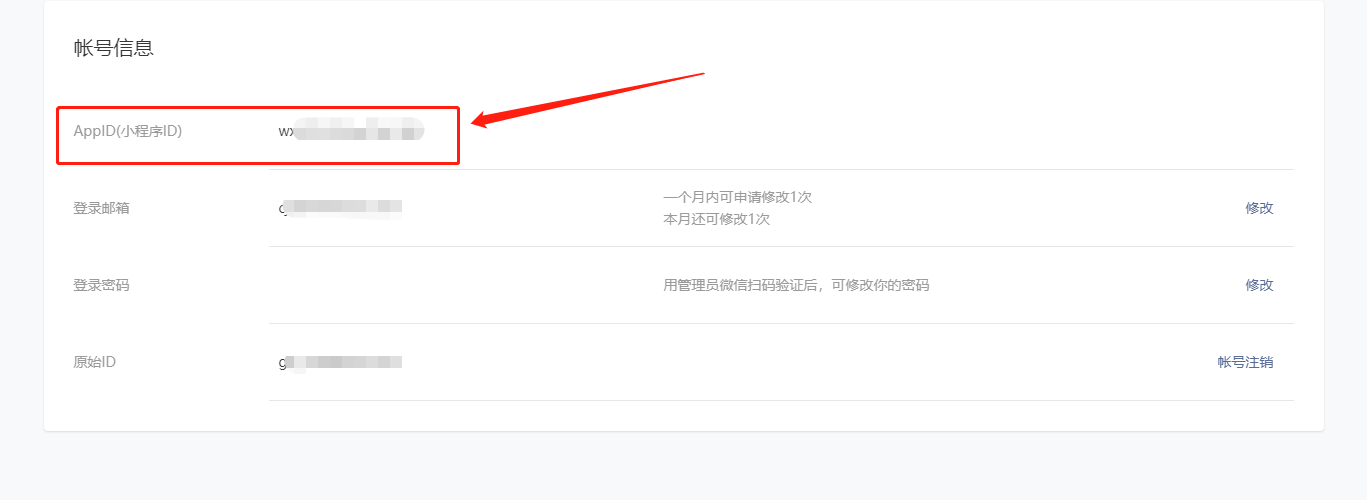 在【设置】----【基本设置】下方【账号信息】中可以查看获取到小程序APPID
