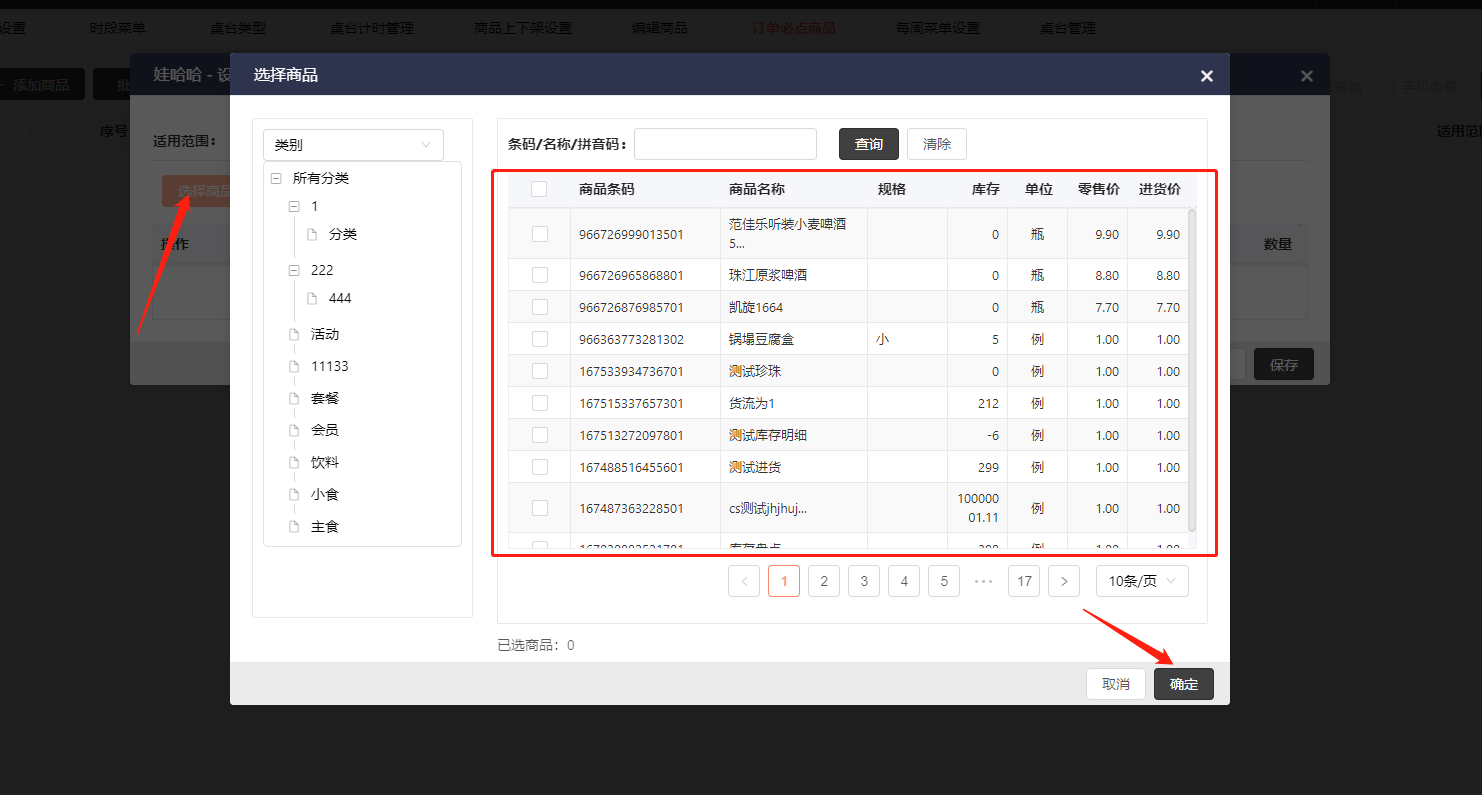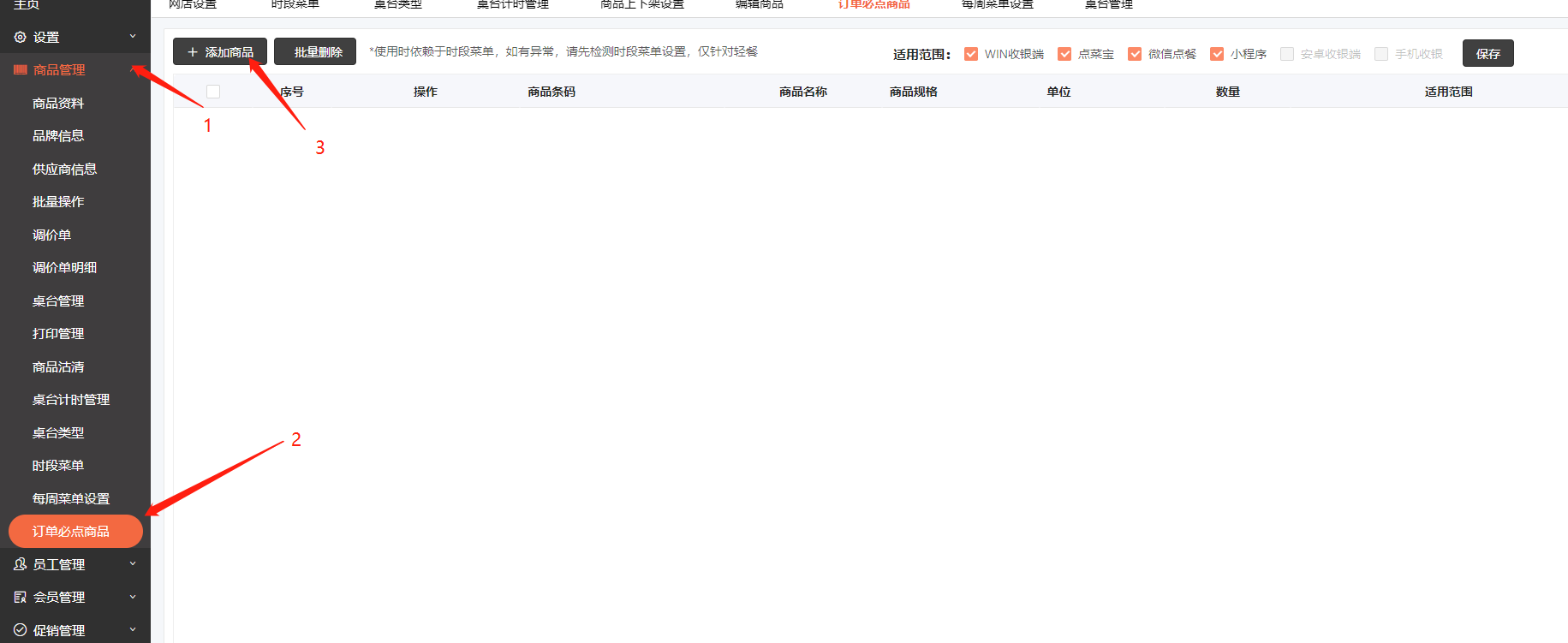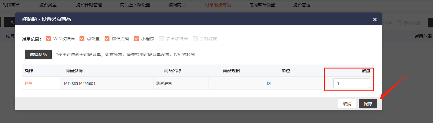 2.商品管理-订单必点商品-添加商品-选择应用范围