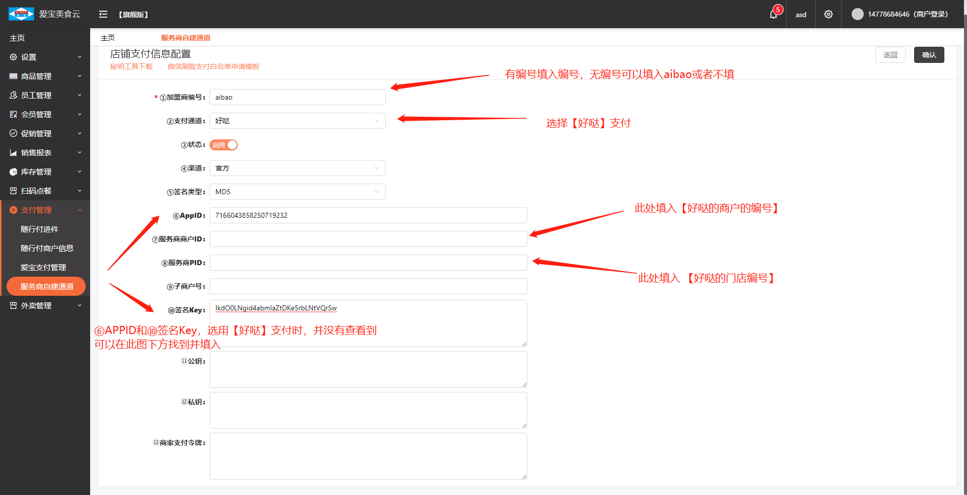 美食云旗舰版对接好哒支付设置教程:http://vblog.aibaocloud.com/article/143