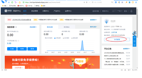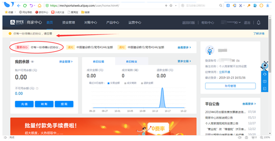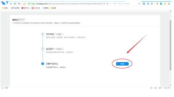 审核通过后登陆支付宝商家中心(https://b.alipay.com)-----短信邮箱都会有提示------登录进行签约