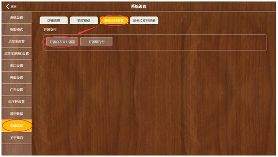 最后返回前台系统设置里开通官方支付通道