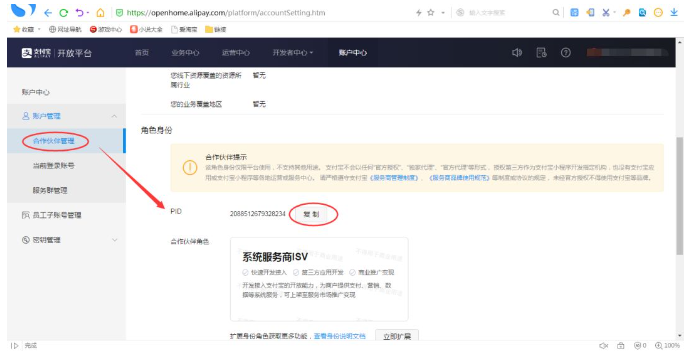 点击账号管理进入界面拉下找到商户信息管理查看PID|key,