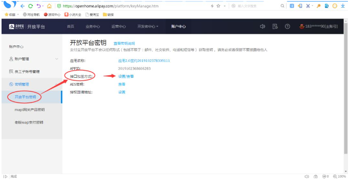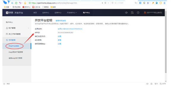 选中开放平台密钥,查看APPID,把该ID复制到美食云后台服务商自建通道对应APPID里
