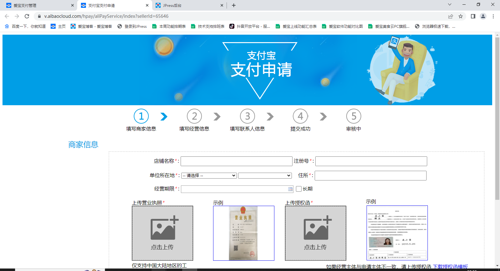 提交资料申请支付宝支付