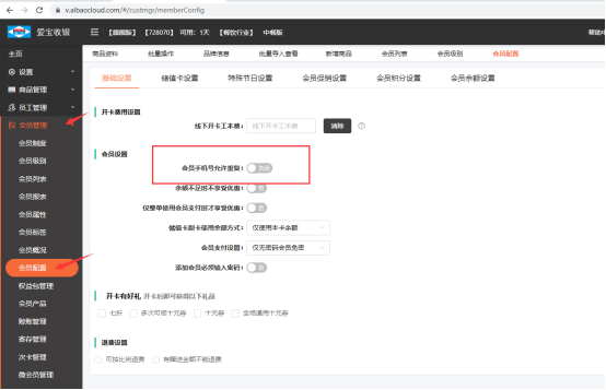 倘若你希望会员的手机号可以重复,可以开启会员手机号允许重复。