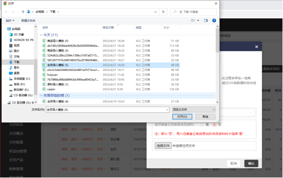 在会员管理中点击会员列表,会员资料下面可以看到导入,点击导入