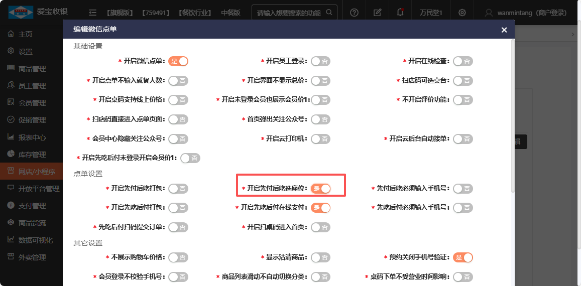 美食云旗舰版扫码点餐自动添加相对应人数开台商品教程