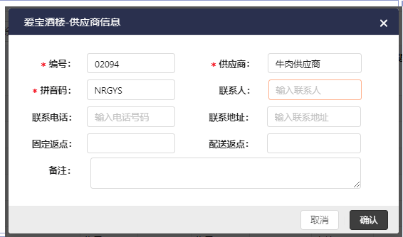 2、添加供货商,商品管理--->供应商信息--->新建--->输入供货商信息,如下图;