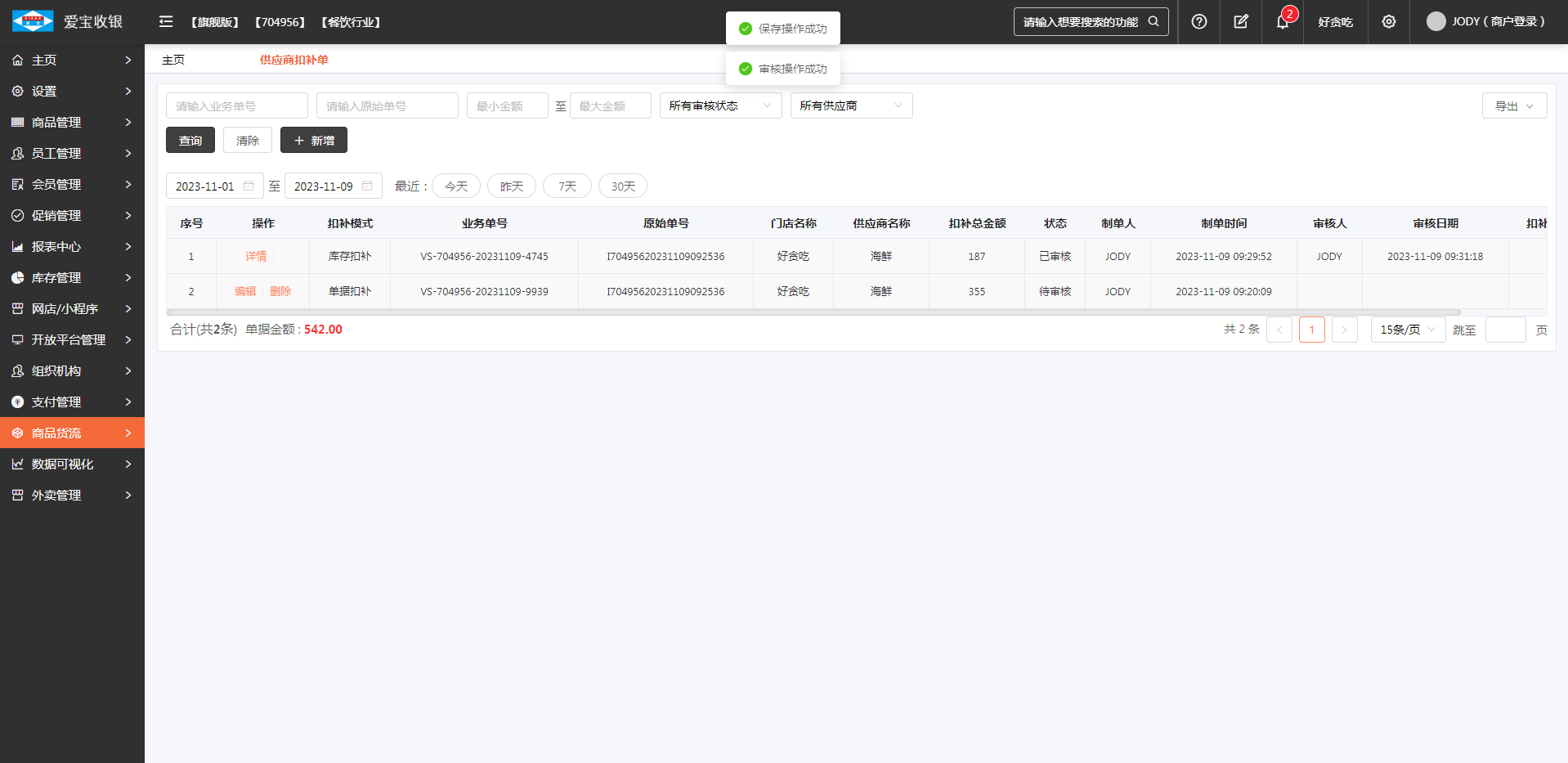 5、审核扣补单单据,点击“编辑”,在点击“审核”即可;
