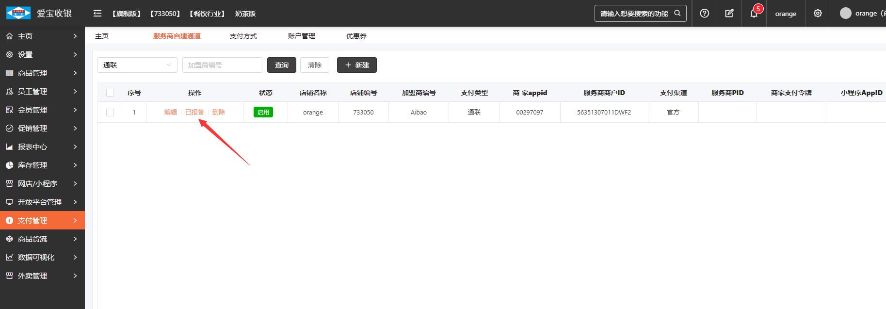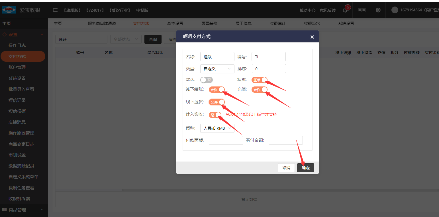 美食云旗舰版对接通联支付设置