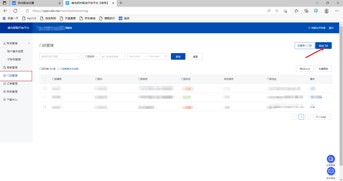 找到门店管理,点击右上角的添加门店