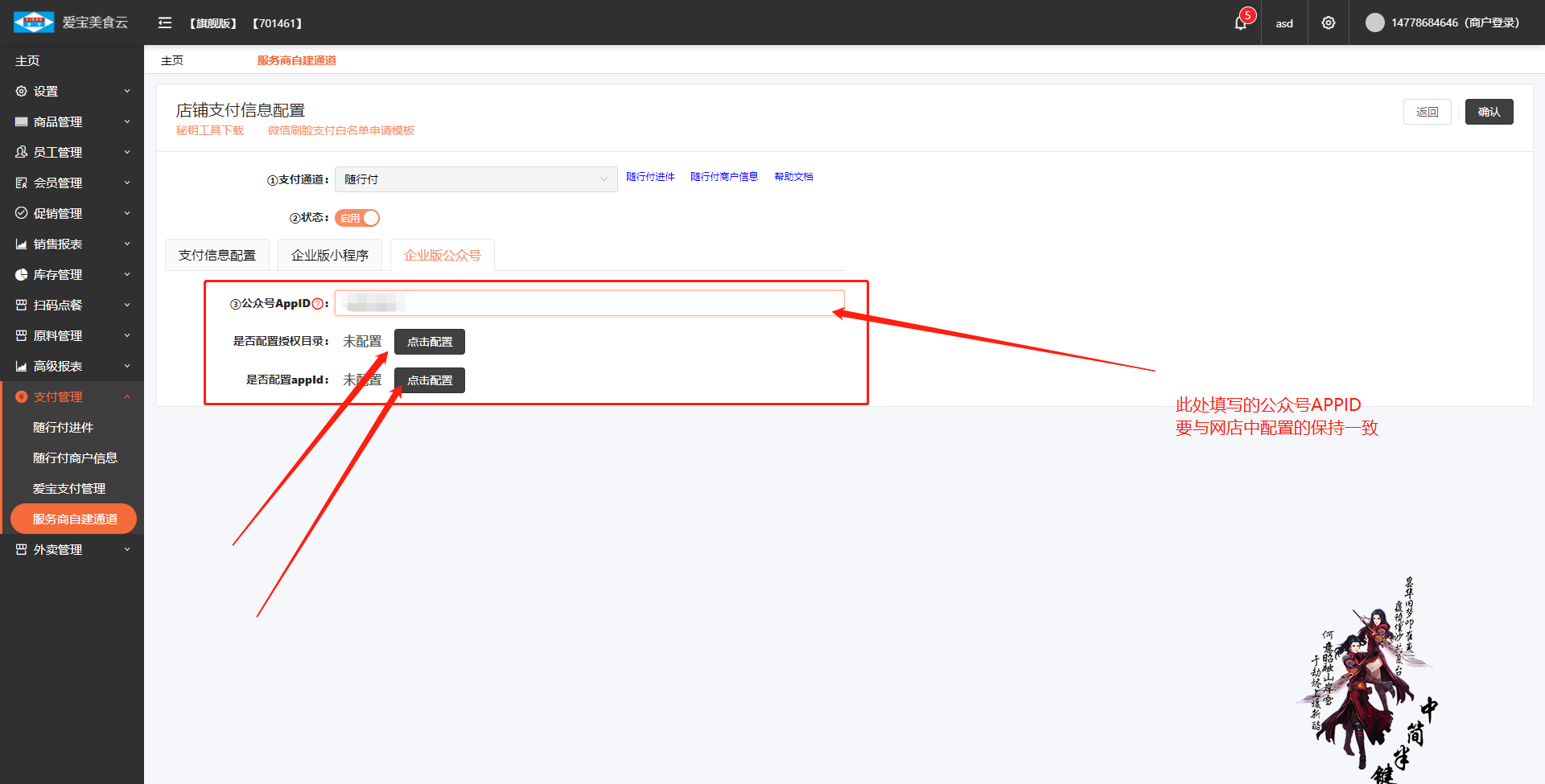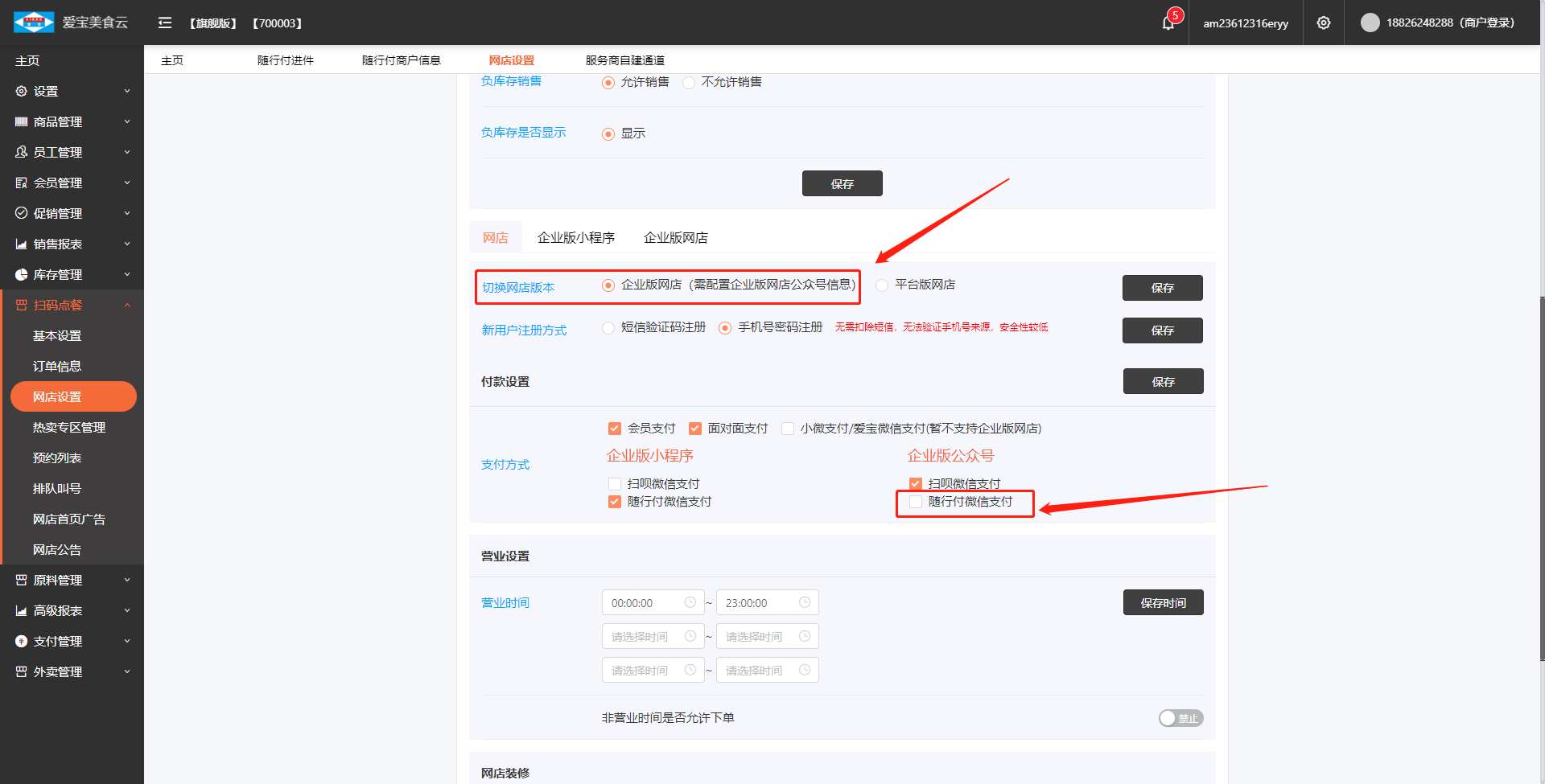 美食云企业版微店设置对接随行付线上支付教程