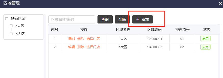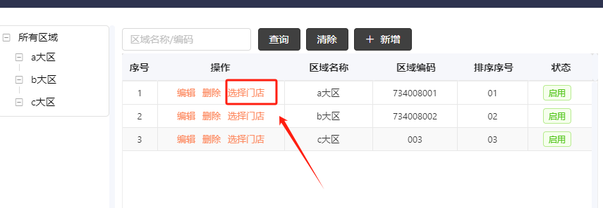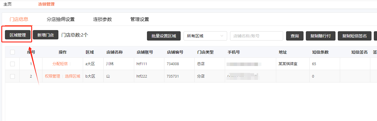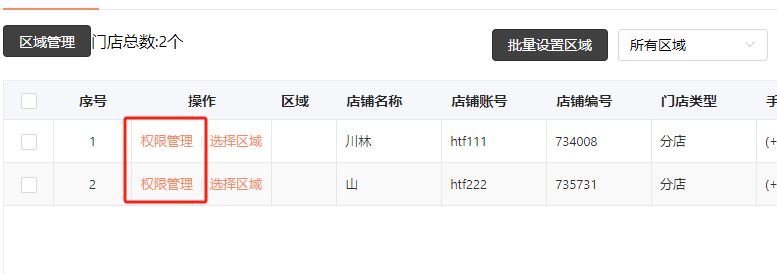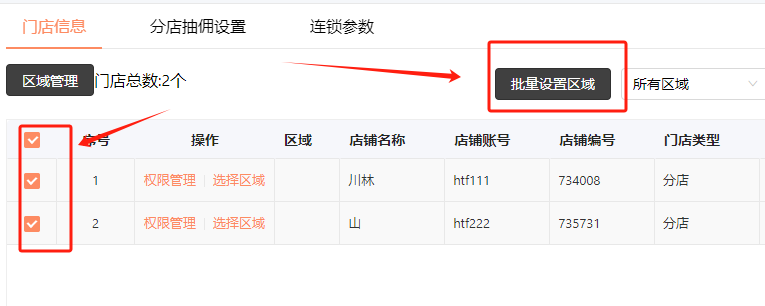 5.批量设置区域:勾选门店批量设置门店到对应区域