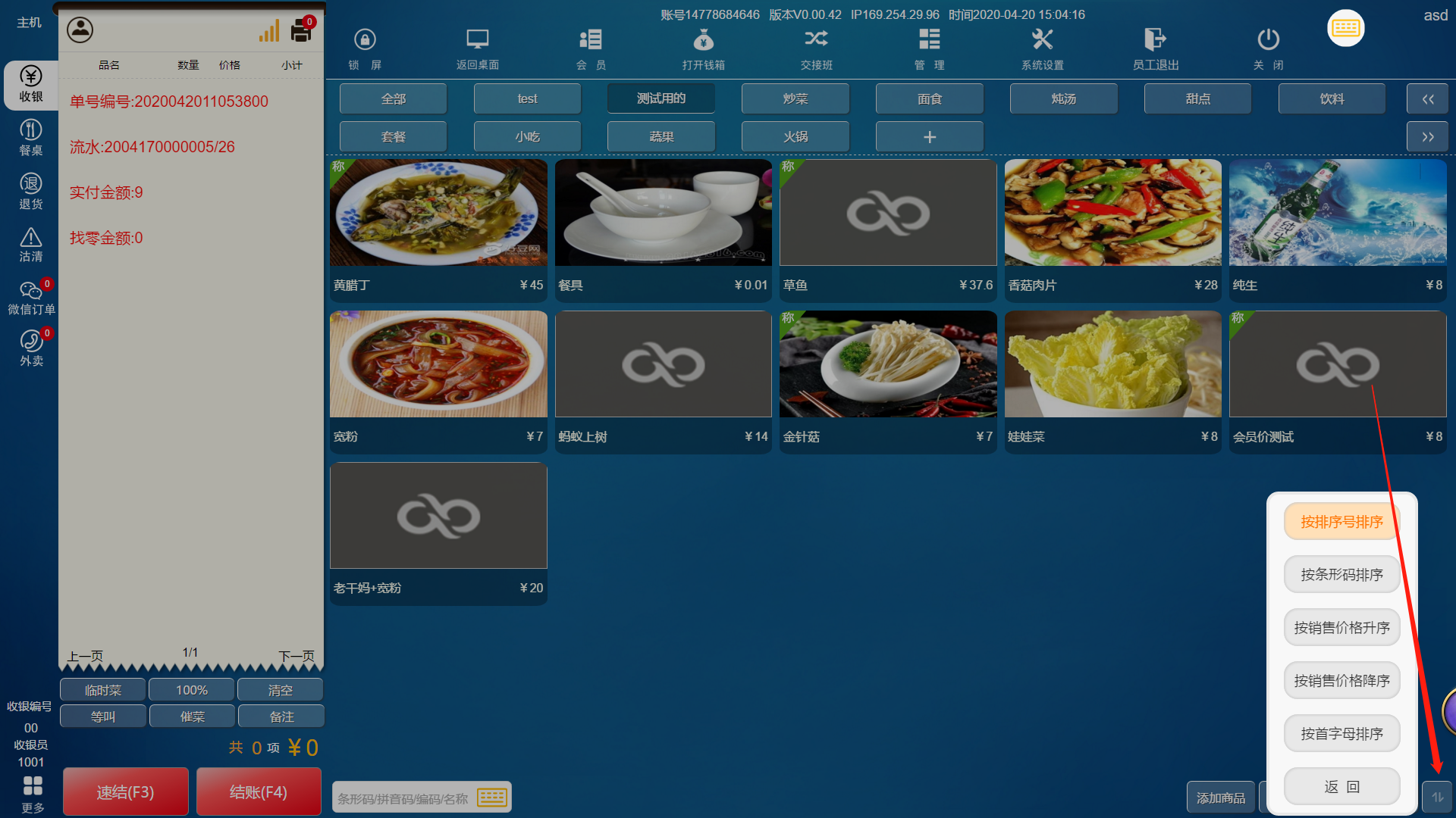 左键长按2秒该商品分类,根据商品排序号进行调整如下图